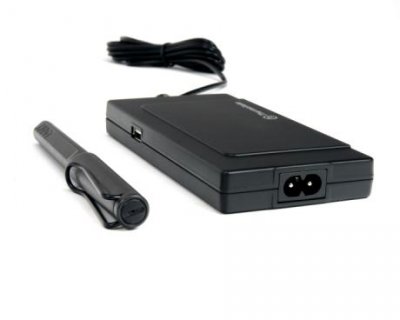Габариты адаптера питания следующие 17.1(H) x 145(D) x 71(W) мм, имеет MTBF (среднее время наработки на отказ) свыше 100 000 часов, при этом присутствует несколько систем защиты. Количество поставляемых сменных переходников питания DC целых 9 штук, поддерживают широкий спектр портативных компьютеров. А также, адаптер имеет порт USB для зарядки большинства телефонов и портативных медиаплееров.