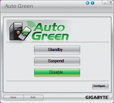 Как и Smart ТРМ, функция AutoGreen работает по протоколу Bluetooth. Она также отслеживает связь между мобильным телефоном и ПК, и, как только пользователь удаляется от ПК, автоматически переводит его в один из двух доступных режимов энергосбережения. В приложении AutoGreen можно выбрать либо режим Suspend, при котором все данные сохраняются в системном ОЗУ, после чего ПК переводится в состояние покоя (режим Hibernation), либо в ждущий режим Standby, когда все некритические компоненты системы отключаются, однако компьютер в режим Hibernation не переходит.Для успешной работы AutoGreen подойдет большинство имеющихся в продаже Bluetooth-адаптеров. Эта функция никак не связана с защитой персональных данных, она предназначена для быстрого автоматического перевода системы в энергосберегающий режим.