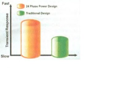 Как видно на диаграмме, переходная характеристика 24-фазного VRM-модуля гораздо выше, чем у типового решения.