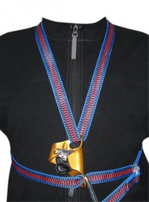 При движении жумар, который обычно стоит выше по веревке, передвигается одной или, по желанию, сразу двумя руками, а грудной зажим тянется вверх собственно подтяжками, т.е. плечами и не требует дополнительного вмешательства рук. Веревка в грудной зажим так же, как и в жумар, легко встегивается одной рукой.