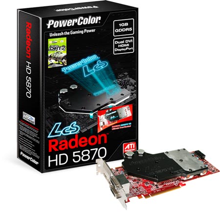Первая видеокарта с графическим чипом ATI Radeon HD 5870 и водяным охлаждением вышла в том году в октябре. Недавно компания TUL выпустила под маркой PowerColor вторую версию этого графического ускорителя.. Ее название - LCS HD5870 V2.