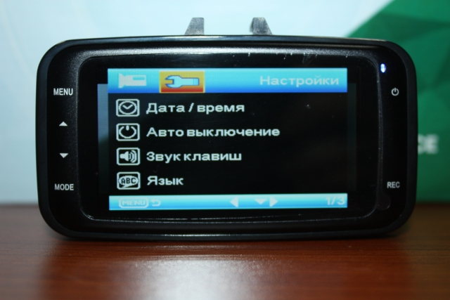 Меню устройства понятное, интуитивно с ним можно разобраться за несколько минут даже без инструкции. Для подтверждения выбора пунктов меню нет привычной кнопки «ОК». Вместо нее используется кнопка «REC» и к этому нужно привыкнуть.