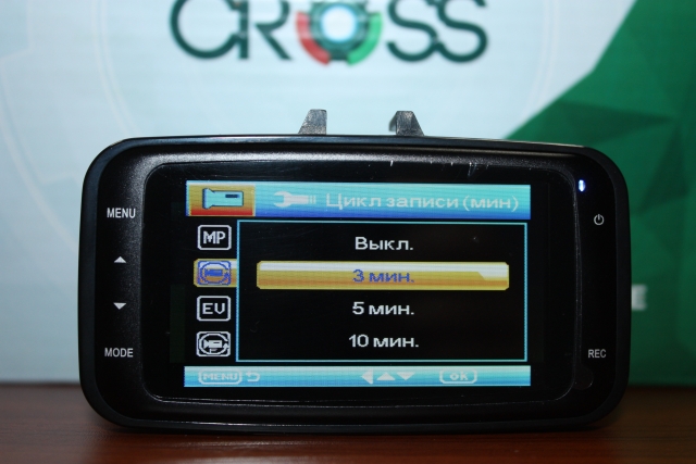 При циклической записи длительность роликов можно устанавливать 3, 5, 10 минут. В разрешении 1920х1080 пикселей фрагмент длительностью 3 минуты занимает около 420 Мб. Исходя из этого можно вычислить носитель какого объема лучше использовать. При полном заполнении карты памяти видеорегистратор автоматически стирает самые старые файлы и сохраняет на их место новые.