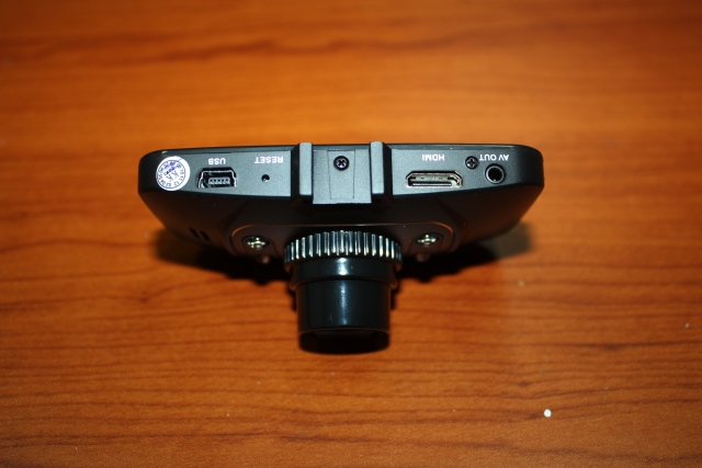 На передней панели находится камера, 4 светодиода, динамик и микрофон. Противоположную сторону регистратора занимает дисплей диагональю 2,7 дюйма. Все кнопки управления размещены на боковых гранях, на верхнем торце – AV-OUT, разъемы HDMI и USB, кнопка перезагрузки и специальный элемент для присоединения крепления.