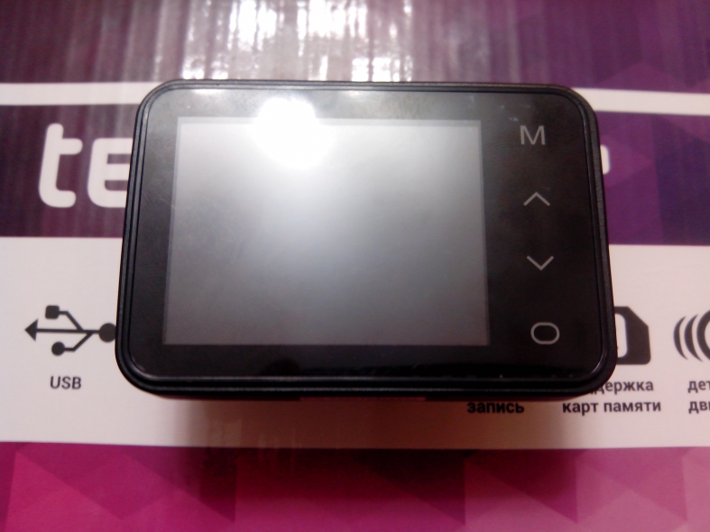 Управление Tenex DVR 640 FHD осуществляется с помощью сенсорной панели, которая установлена на задней части устройства. Как Вы видите, присутствуют кнопки меню, выбора и подтверждения. Управление простое и незамысловатое, на то чтобы разобраться с управлением и настроить регистратор у меня ушло не более 10 минут. Экран значительно помогает при настройке аппарата, кроме этого на нем можно просмотреть отснятые видеоматериалы. Такая функция может очень выручить, если необходимо показать отснятое видео прямо на месте ДТП, или на месте возникновения спорной ситуации. В дороге может произойти многое, поэтому такая возможность может быть очень полезна. Естественно экран видеорегистратора не сможет качественно передать все детали видео Full HD разрешения, однако основные моменты будут видны. От экрана, установленного на видеорегистратор большего и не требуется, так как все понимают, что это не полномасштабный монитор или телевизор. Для точности описания задней панели устройства хочу добавить, что сенсорная панель резистивная, а не емкостная, как на современных смартфонах. Естественно, такая панель менее удобная в управлении, однако и пользоваться ей приходится не так часто, как смартфоном. В идеале видеорегистратор можно настроить всего один раз, после чего его можно вовсе не трогать. Все настройки сохраняются в памяти, а функция автовключения и автовыключения вместе со стартом и остановкой двигателя будет автоматически включать и выключать регистратор. Брать аппарат в руки придется только в случае если нужно будет просмотреть отснятый материал.