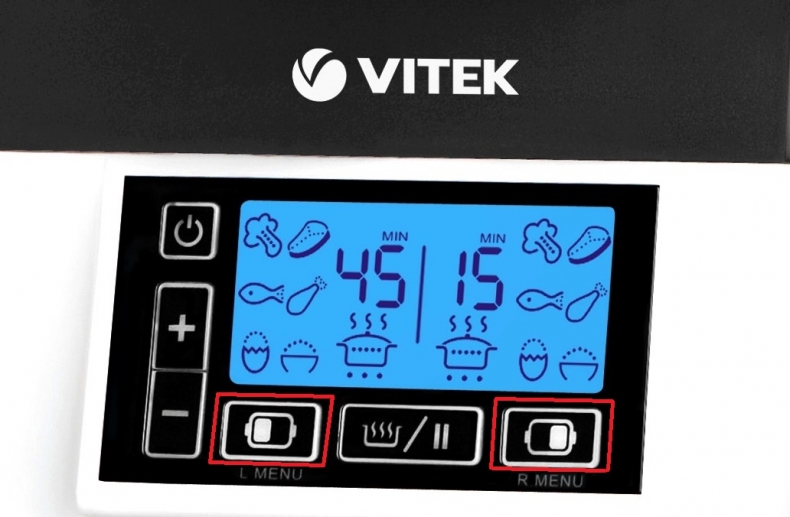 Выбор программы варки осуществляется с помощью двух кнопок: «Левое меню» (L MENU) и «Правое меню» (R MENU).