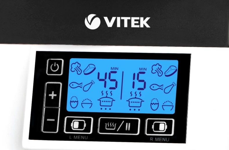 Для регулировки процесса приготовления Vitek VT-1560 имеет жидкокристаллический дисплей, а также электронную панель.