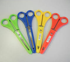 Ножницы выбирайте легкие и небольшие. Они должны иметь закругленные концы и резиновые вставки на ручках, что предотвратит скольжение пальцев. Такими ножницами ребенку будет удобно и комфортно работать.