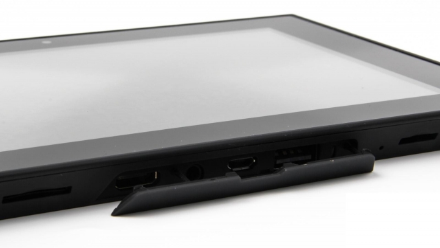 Помимо указанных элементов, рядом с разъемом для microSD-карты, расположено отверстие чувствительного микрофона. Самым главным нареканием на планшет является именно крышка, которую необходимо открывать каждый раз, когда Вам требуется зарядить планшет либо послушать музыку в наушниках. Правда, стоит отметить, что сама заглушка сделана качественно и надежно, а ее открытие осуществляется очень просто.