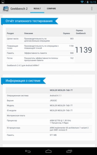 Несмотря на отсутствие олеофобного покрытия, поверхность экрана очень гладкая. WEXLER TAB 7t способен обработать до пяти одновременных нажатий. Обработка нажатия быстрая и точная, ошибочных срабатываний нами не замечено.