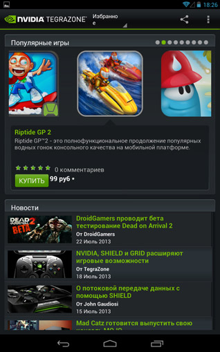 Данного «железа» достаточно для выполнения абсолютно всех задач, для выполнения которых и созданы эти устройства. Так, просмотр фильмов, в том числе и в HD-качестве, музыка в lossless-форматах, «тяжелые» игры – все идет плавно, без рывков и артефактов. Отдельно стоит остановиться на играх. Оптимизированные под чип NVIDIA Tegra 3 игры идут на максимальных настройках с дополнительными визуальными эффектами, а неоптимизированные с приемлемым значением fps (не ниже 25 кадров в секунду) – на средних значениях уровня качества графики.