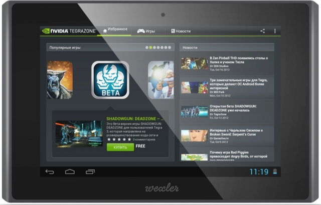 Интерфейс текущей системы (Android 4.1.1 Jelly Bean) не претерпел ни малейших изменений и пользователь получает в свое распоряжение чистый Android. Производитель добавил лишь несколько приложений: пробную версию навигационной программы «Навител», полную версию популярной online-игры «King's Bounty: Legions», погодную программу «Gismeteo», менеджер файлов «IO», программы для чтения электронных книг «Cool Reader», «FBReader», «EBookDroid» и магазины приложений «WEXLER Play» и «TegraZone».