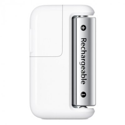 Зарядное устройство от ИТ гиганта Apple. Чем мог ещё удивить нас Apple, как не зарядным устройством, которое никто не ожидал. Предназначено оно для заряда аккумуляторов формата АА, которые используются как автономное питанием в периферийных устройствах, например, в таком продукте как Magic Mouse и Magic Trackpad. Компания считает свое новое зарядное устройство максимально оптимизированным для своих аккумуляторов, но конечно же им можно будет заряжать любые элементы типа АА стандарта NiMH. Зарядное устройство рассчитано на два аккумулятора.