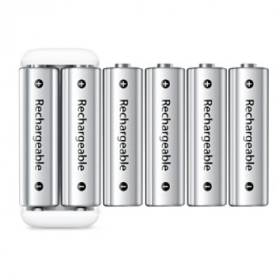 В комплекте к зарядному будет прилагаться 6 аккумуляторных батарейки типа АА от Apple, на них производитель гарантирует 10-ти летний срок службы. Кроме того, зарядное устройство относится к экологичной серии, имеет очень низкое потребление энергии, которое составляем в режиме ожидания 30мВт, ни одно аналогичное устройство не предоставляет такого.