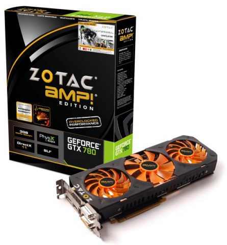 Компания Zotac International анонсировала новую усиленную версию [видеокарты](/gigabyte-radeon-hd7850-2048mb-gddr5-975mhz-(gv-r785oc-2gd)-info.html) GeForce GTX 780, которая получит обновленную систему охлаждения Triple Silencer. Новинка ориентирована на геймеров и энтузиастов. Как заявили производители, новая графическая карта Zotac GeForce GTX 780 AMP! Edition, дает возможность даже самому требовательному геймеру добиться высокой производительности, при низком уровне шума и без потери качества графики и четкости изображения.