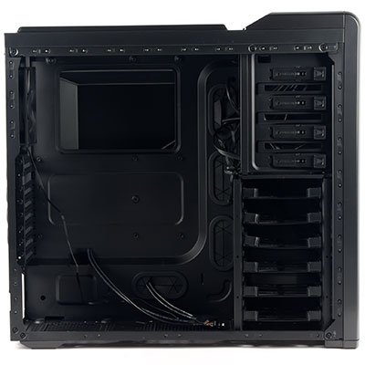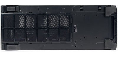 Дрібні і великі прорізи і отвори зроблені в бічних стінках відсіку для жорстких дисків, таке рішення дозволяє встановлювати кулери оптимальної ефективності.