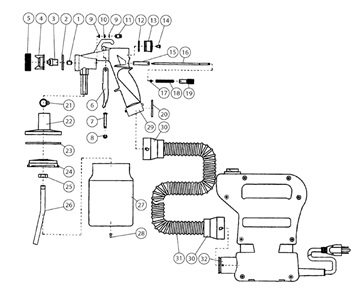 - фарбувальний алюмінієвий пістолет з латунної форсункою діаметром 1,8 мм;