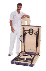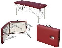 Складаний масажний стіл в складеному вигляді являє собою невелику валізу, що займає небагато місця, що не викликає проблем його зберігання. Вага переносного масажного столу складає близько двадцяти кілограм, а саморегулюючі ніжки надають столу стійкість навіть на нерівній поверхні.