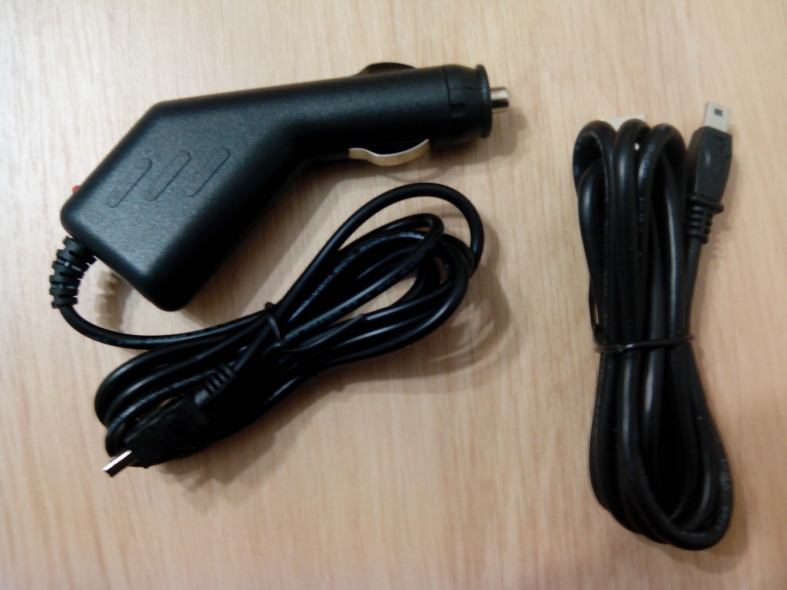 Крім кріплення, в комплекті поставляється автомобільний зарядний пристрій і USB-кабель. Шнур від зарядного пристрою досить довгий для того, щоб зручно розташувати навігатор в машині, а сам шнур заховати під оббивку. Особисто у мене апарат включений в прикурювач практично завжди, тому можливість заховати шнур під оббивку салону для мене є значною перевагою.