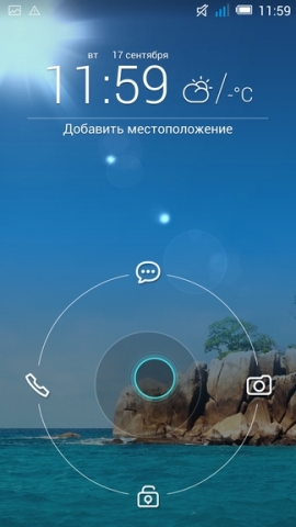 У верхній частині екрану блокування розташовуються віджети (прогноз погоди, календар і інші). Всього їх може вміщуватися до дев'яти штук. У внутрішній пам'яті смартфона встановлено широкий набір яскравих і функціональних віджетів. У нижній частині екрана блокування розташовується коло, в правій частині якого знаходиться іконка швидкого запуску камери, в лівій - іконка номеронабирача, у верхній - іконка повідомлення, а в нижній - зображення замочка. Для швидкого переходу до одного з додатків або для розблокування екрану потрібно провести пальцем з центру кола до потрібної іконки.