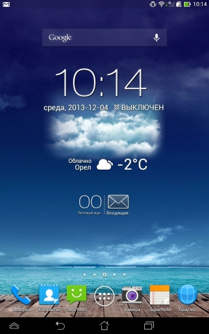 За замовчуванням на головному робочому столі планшета знаходяться пошуковий рядок, віджети годин, прогнозу погоди і пошти.