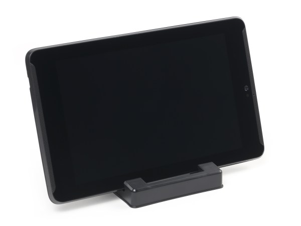 Підставка повністю виконана з пластика. На ній можна закріпити планшет як в горизонтальній, так і у вертикальній орієнтації.
