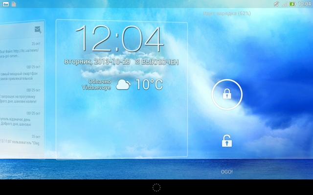 У верхній частині екрану блокування в вертикальної орієнтації планшета розташовуються віджети (годинник, погода тощо), а в нижній частині дисплея знаходиться замочок, за допомогою якого його можна розблокувати. У горизонтальній орієнтації планшета віджети займають ліву частину екрану блокування, а замок знаходиться в правій частині екрана. Віджети можна перегортати. Також на екран блокування виводиться інформація про пропущені виклики, нові повідомлення. Тут можна побачити найменування оператора мобільного зв'язку, повідомлення про розрядженою батареї і процес заряду акумулятора, якщо планшет підключений до зарядного пристрою.
