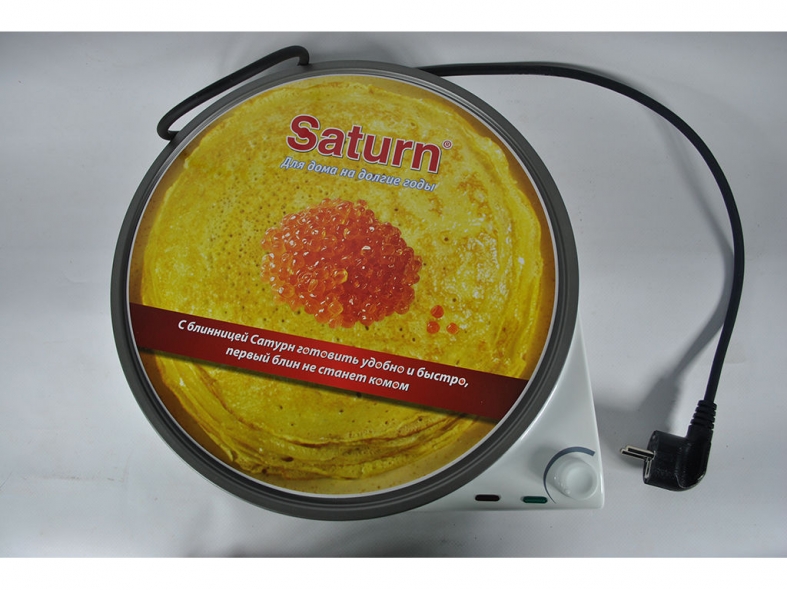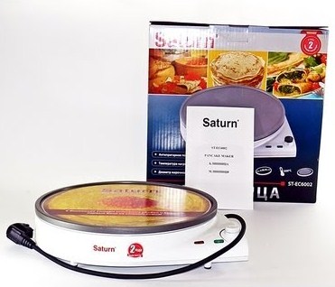 Блинница Saturn ST-EC6002 зовні нагадує однокомфорочную електроплиту невеликого розміру. Але оцінити її можливості можна тільки після того, як буде випечений перший млинець. Маючи в будинку таку надійну помічницю, доведеться забути про приказці, в якій говориться, що «перший млинець грудкою». Тепер млинці не будуть рватися, а краю у них будуть рівні і красиві. Крім млинців з її допомогою можна готувати тости, пишні оладки, яєчню і багато інших страви. Господині буде досить приготувати тісто, а вже випічкою займеться цей агрегат.