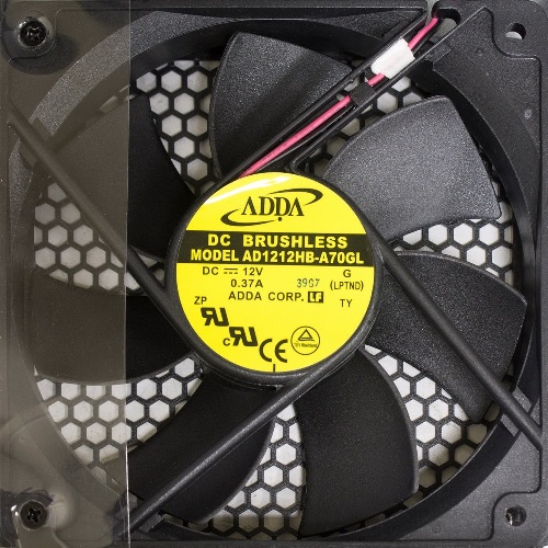 Далі починається лінійне зростання швидкості обертання крильчатки і до позначки 650 Ватт вентилятор набирає 2000 оборотів в хвилину, що більше ніж максимальні 1850 оборотів в хвилину у блоку живлення Seasonic 750W SSR-750RM. На таких високих оборотах чітко чути шум розсікає крильчаткою повітря, який не робить негативного впливу на користувача, зливаючись з шумом побутового або офісного приміщення. І тільки пізно вночі, коли відсутні сторонні джерела звуку, шум вентилятора може дратувати при тривалому знаходженні на близькому, щодо джерела шуму, відстані. Але, на відміну від конкуруючих рішень, система охолодження «Seasonic SSR-750RT 750W» не має неприємного гулу в процесі перемикання фаз двигуна, та й температура всередині блоку живлення завжди залишається комфортною для начинки. Нагадаю, що паспортна швидкість вентилятора «ADDA» (AD1212HB-A70GL) становить 2200 обертів на хвилину і виходить, що колектив розробників задіяв чи не весь його потенціал, що негайно позначилося на ефективності охолодження вироби в режимах експлуатації, близьких до максимально допустимому навантаженні. Допомагає в цьому і спеціальна прозора заслінка, розміщена з метою оптимізації протікання повітряного потоку, а також його більш точного позиціонування в найбільш страждає від нагрівання частини блоку живлення.