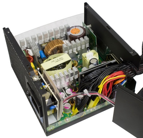 Сглаживающий дросель між випрямлячем і вихідними конденсаторами лінії «+ 12В» виконаний на спеціальному феррімагнітном кільці багатожильним проводом з ретельної ізоляцією кожної конкретної жили. Два VRM, використовують принцип широтно-імпульсного регулювання з силовими ключами і високою частотою перетворення, формують напругу для ліній «+5 В» і «+3,3». Вхідна напруга вони отримують від лінії «+ 12В», що зумовило високу ефективність роботи при незначних габаритних розмірах дроселів. Для зниження рівня пульсацій, активний модуль PFC виконаний за схемою обратноходового перетворювача.