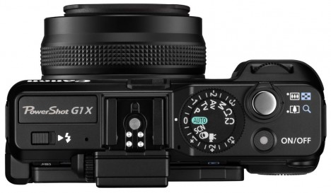 У лівій частині верхньої панелі PowerShot G1 X розташовуються вбудована спалах, прихована в корпусі, з важелем її активації і пятіконтактний «гарячий черевик» (призначений для підключення різних аксесуарів). У правій частині верхньої панелі можна побачити диск вибору режимів зйомки, розташований поверх диска вибору витримки, кнопка харчування і клавіша спуску затвора, обрамлена важелем масштабування. Крім того, на верхній панелі розташовуються два отвори мікрофону, що забезпечують запис стереозвуку.