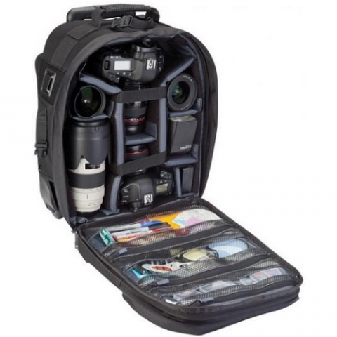 Модель Tamrac CyberPro Rolling 5267 - синтез сумки на колесах і рюкзака. Цей багатофункціональний рюкзак відмінно підходить для транспортування і зберігання різної фотоапаратури. Якщо плечові ремені не використовуються, їх можна заховати ( Завдяки системі Tuck-A-Way) всередину спинки рюкзака.
