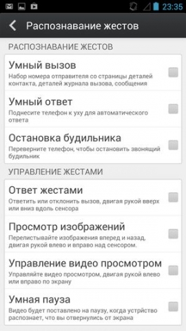 Fly IQ 453 Luminor FHD працює під управлінням Android 4.2.1. Інтерфейс системи залишився практично не зворушеним. Перемальовані лише значки встановлених в системі додатків, а також деякі меню. Виробником були додані схема енергозбереження та управління жестами. На жаль, домогтися адекватної роботи цих функцій нам не вдалося. І енергозбереження, і управління за допомогою жестів вимагають серйозного доопрацювання.