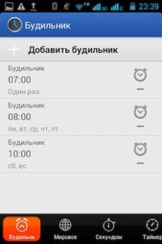 Додаток "Годинник" складається з чотирьох вкладок - "Будильник", "Світовий час", "Секундомір" і "Таймер".