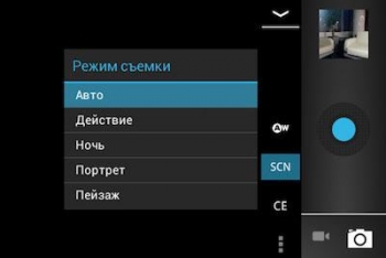 Доступні 5 варіантів режиму зйомки ( "Авто", "Ніч", "Пейзаж", "Дія" та "Портрет"). Налаштувань балансу білого рівно стільки ж ( "Сильна", "Люмінесцентна лампа", "Авто", "Лампа розжарювання" і "Денне світло").
