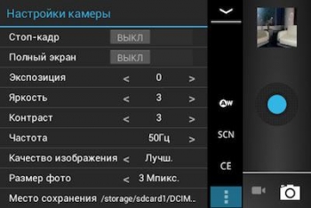 Також доступні такі параметри, як "Стоп-кадр", "Розмір фото", "Місце збереження", "Якість зображення", "Повний екран", "Яскравість", "Частота", "Контраст" і "Експозиція".