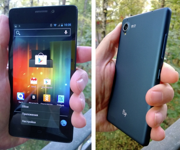 Нехай Fly IQ4412 Quad Coral не є ні самим компактним, ні найтоншим смартфоном у світі, проте, він зручно лежить в руці і поміщається в кишеню.