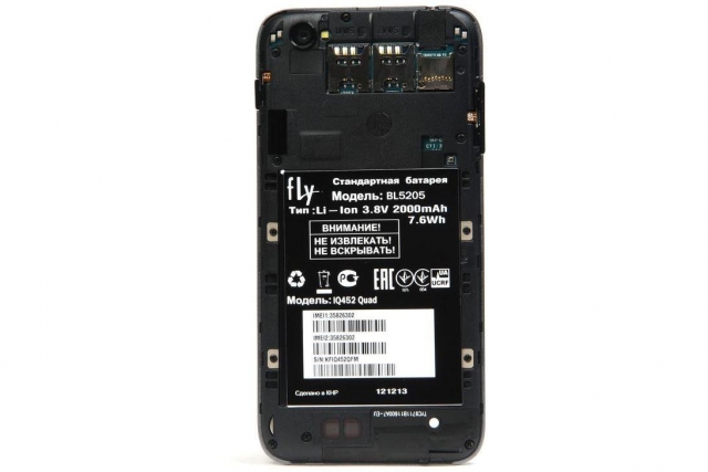 Для зняття кришки на нижньому торці передбачено спеціальне поглиблення. Під даними знімним елементом конструкції перебувають два гнізда для установки карт формату microSIM, слот під microSD-накопичувач і відсік, в якому розміщений незнімний джерело живлення.