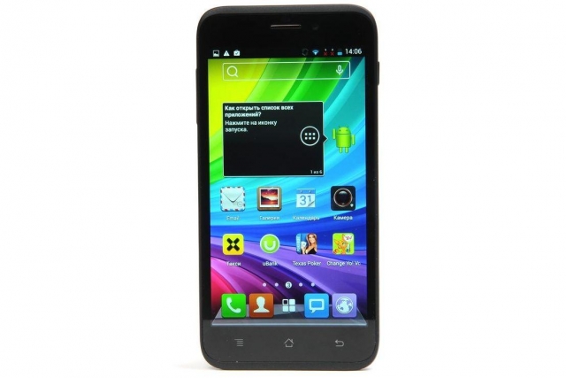 В даному смартфоні встановлені "Телефон", "Телефонна книга", "SMS / MMS", "Браузер", "Музика", "Диктофон", "Пристрій", "Налаштування", "Календар", "Завдання", "Калькулятор "," Play Маркет "," Gmail "," Flybook "," Facebook "," YouTube "," uBank "," Texas Poker "," Seabirds "," Карти "," Навігація "," Годинник "та інші.