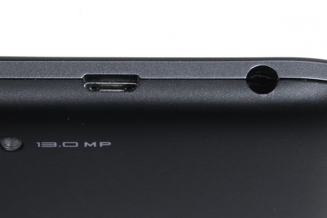 На тильній частині оглядається моделі розташовані трохи втоплений в корпус вічко камери, світлодіодний спалах і мультимедійний динамік.