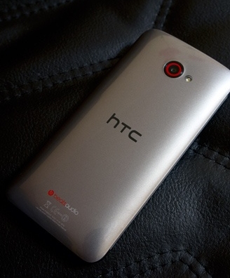 На тильній стороні розміщені такі елементи: камера, спалах і логотип HTC. Ліве ребро корпусу пустує, а на правому - кнопка регулювання гучності. Роз'єм для підключення microUSB-кабелю знаходиться на нижньому торці. Там же присутній невеликий отвір мікрофона. Верхній торець доповнений ще одним мікрофоном, роз'ємом для навушників, кнопкою харчування, ІК-портом. Під заглушкою приховані слоти для карти пам'яті і microSIM.