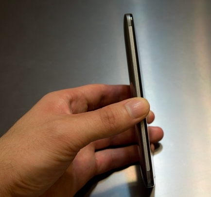На фронтальній панелі розташовані: 5-дюймовий дисплей, 2 динаміка, логотип виробника, датчики, камера для відеодзвінків і автопортретів. Під дисплеєм є ряд сенсорних кнопок «Назад», «Додому» і «Контекстне меню». Придивившись до грат верхнього динаміка, ви помітите світлодіод. Вся передня панель прикрита міцним склом Gorilla Glass третього покоління. Саме скло злегка заокруглені по краях. Таке рішення виглядає цікаво.