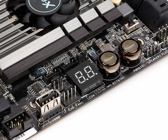 Елементи управління на материнській платі, безумовно, присутні, але їх кількість явно менше ніж у материнських плат адресованих оверклокерам. З елементів управління на платі розташовані: кнопки «RESET», «POWER» і «CMOS» (на інтерфейсній панелі), індикатори POST кодів і мікроперемикач для вибору мікросхеми BIOS.