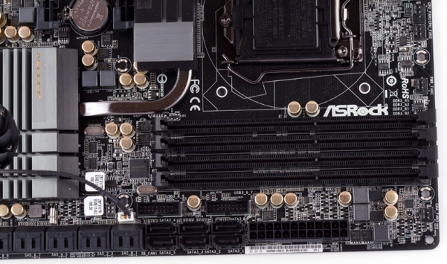 Материнські плати, засновані на системній логіці Z87, підтримують максимум 32 Гб оперативної пам'яті. Залежно від форм-фактора плата може мати два або чотири роз'єми DIMM. Тестована материнська плата оснащена чотирма роз'ємами DIMM. Підтримуються модулі стандарту DDR3 з номінальною частотою до 1600 МГц. У разі розгону плата дозволяє встановлювати модулі з номінальною частотою до 2933 МГц. Підтримуються модулі оперативної пам'яті з профілями XMP версії 1.2 і 1.3. Роз'єми розташовані на звичному місці - праворуч від процесорного роз'єму. Всі чотири роз'єми DIMM виконані в чорному кольорі і забезпечені засувками тільки з верхнього краю. Підсистема живлення модулів оперативної пам'яті складається з трьох фаз.