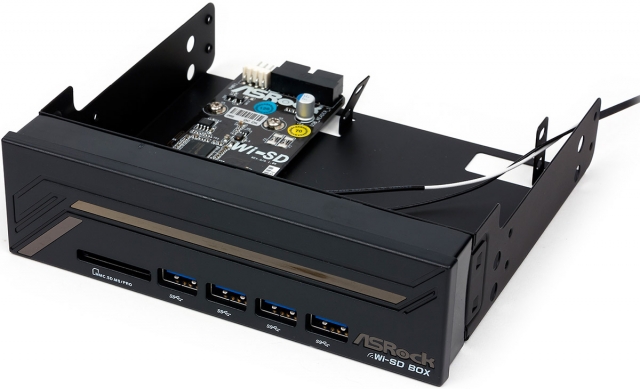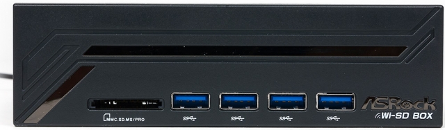 Крім усього перерахованого в комплект поставки входить багатофункціональна панель ASRock Wi-SD. Дана панель призначена для установки в відсік 5,25 дюймів на передній панелі корпусу. Панель оснащена чотирма роз'ємами USB 3. 0 і картрідером форматів SD / MMC / MS.
