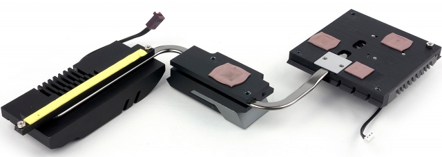 Крім силових елементів підсистеми живлення на платі знаходиться багато допоміжних контролерів і комутаторів, які потребують охолодження. Система охолодження материнської плати складається з трьох досить великих радіаторів з'єднаних між собою тепловою трубкою.
