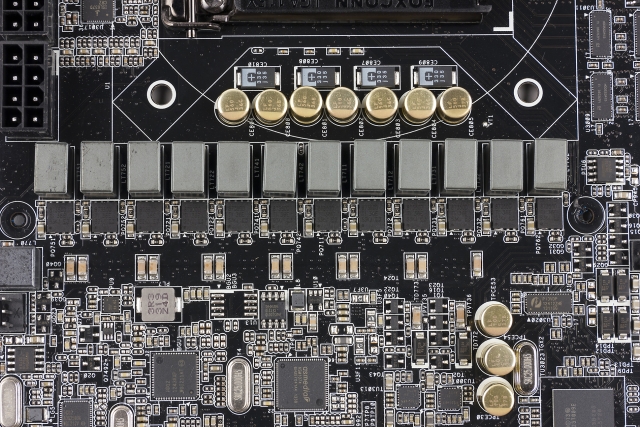 У разі організації масиву з відеокарт на нижньому краї друкованої плати передбачено два роз'єми додаткового живлення відеопідсистеми.