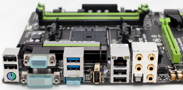 З них два роз'єми PCI Express х16. Перший з них використовує лінії центрального процесора і має специфікацію PCI Express 3.0 (за умови використання APU Kaveri). Другий використовує лінії набору системної логіки і має специфікацію PCI Express 2.0. Роз'єми завжди працюють за схемою х16 + х4. Зважаючи на таке розділення ліній PCI Express виробником заявлена ??підтримка масиву відеокарт CrossFire. Крім них присутні три роз'єми PCI Express х1 і два роз'єми PCI.