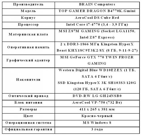 Компанія «Брейн Компьютерс» присутній на комп'ютерному ринку вже більше 20 років. Компанія займається не тільки продажем комп'ютерної техніки і комплектуючих, але і продажем зібраних систем під своєю торговою маркою BRAIN. Сьогодні на тестування потрапила система Brain Top Gamer Dragon Mini. Виходячи з назви системи, можна зробити висновок, що вона призначена для геймерів. Наскільки вдало співробітники компанії підібрали комплектуючі в даній системі і наскільки вона відповідає своїй назві, розберемося в даному тестуванні. Нижче приведу специфікацію системи Brain Top Gamer Dragon Mini.