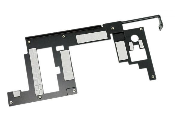 Мікросхеми відеопам'яті і силові елементи підсистеми живлення охолоджуються металевою рамкою.